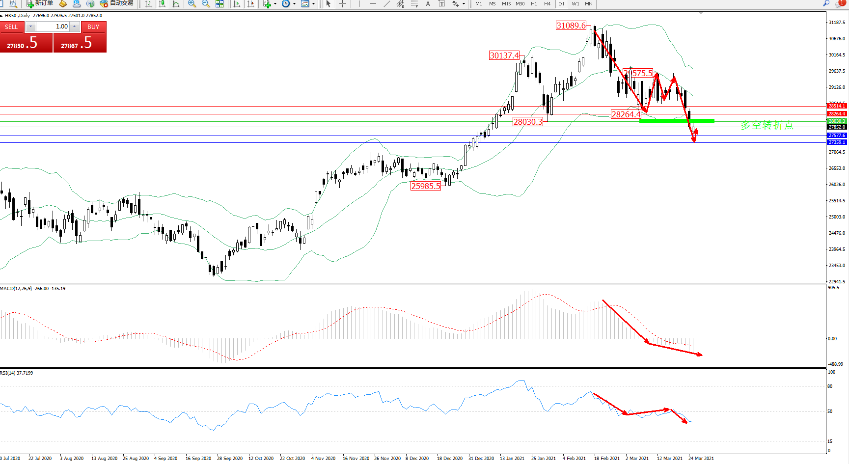 恒指HK50 ——日K线图显示: