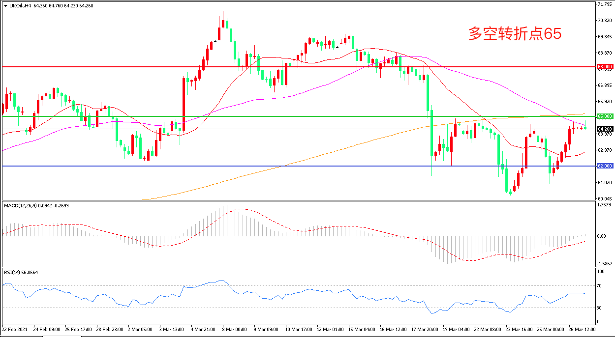 交易策略:在65.00之下看跌,目标62.00         59.00
