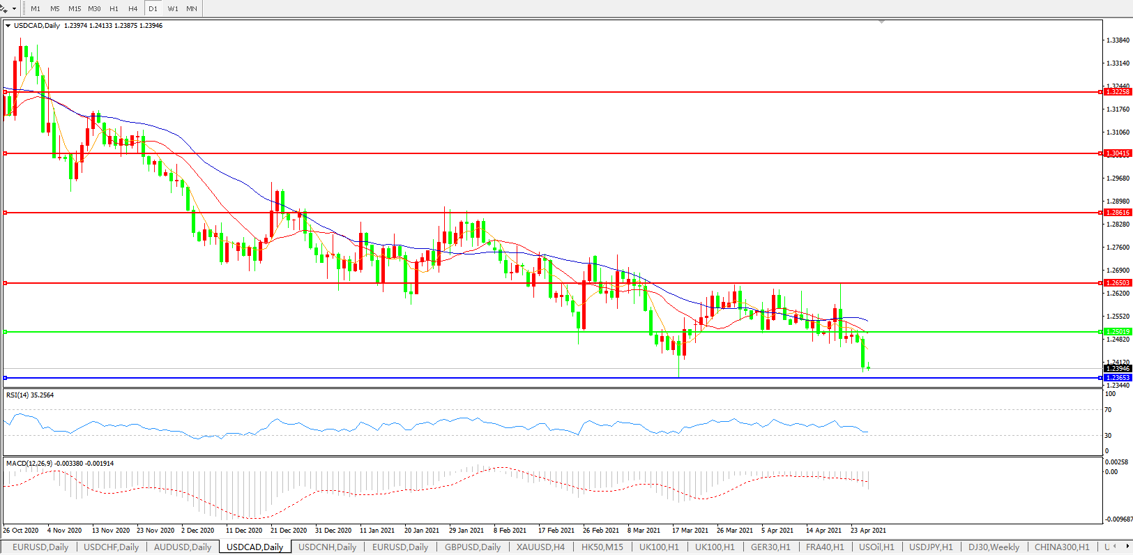 交易策略:在1.2500之下,看跌,目标价位为1.2365、1.2200