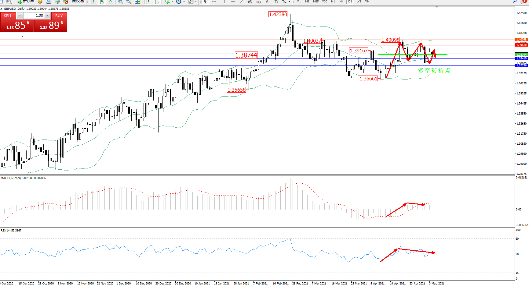 交易策略:1.38744上方看涨,目标1.39610、1.40098