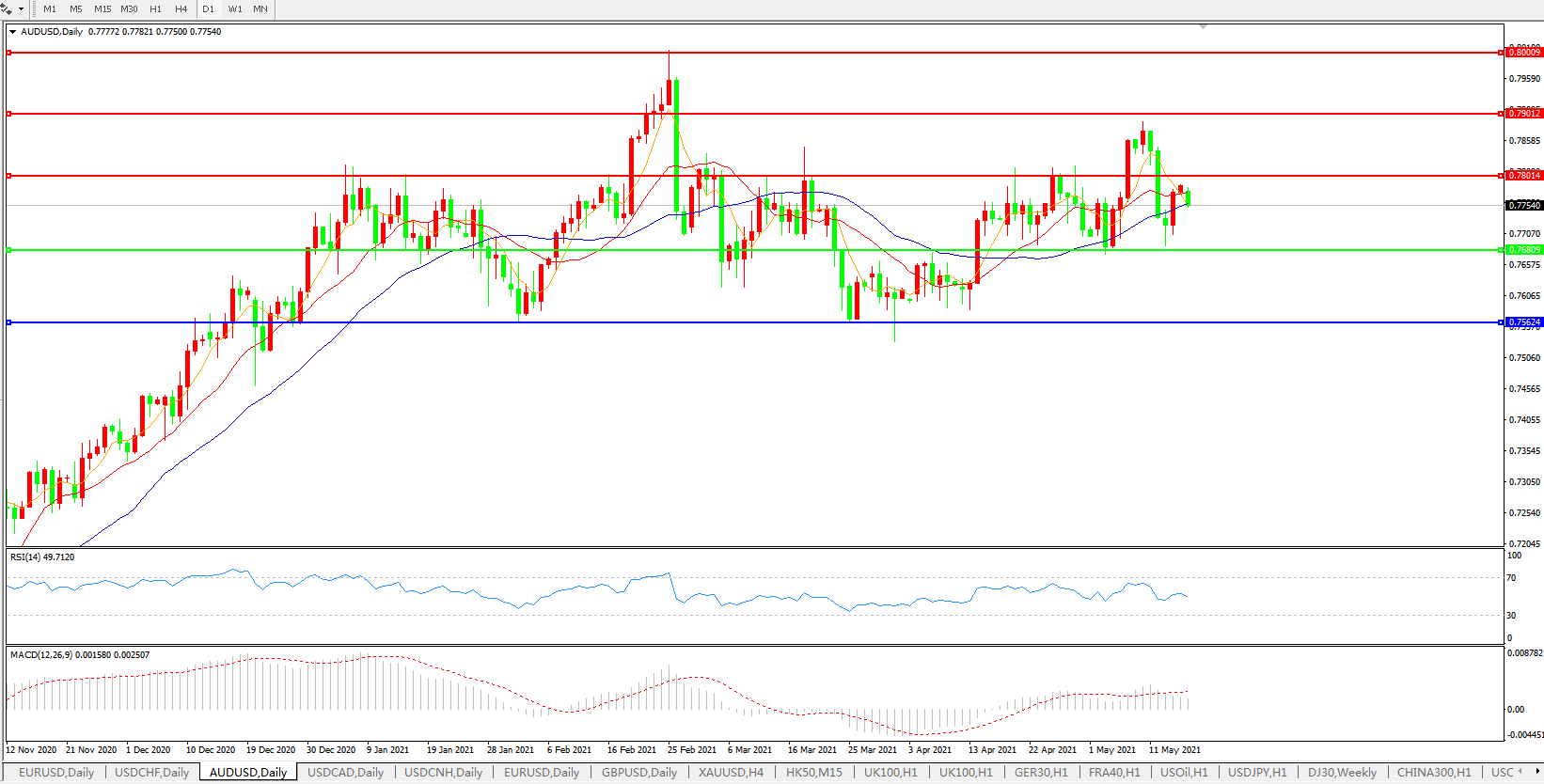 备选策略:0.7680下方看跌,目标0.7560、0.7400