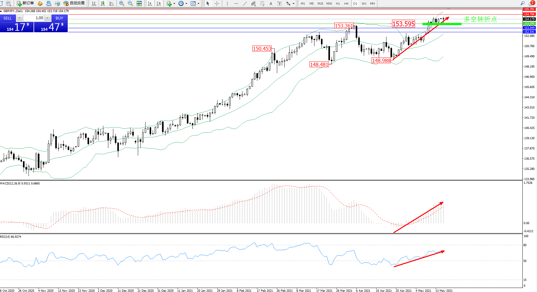 多空转折点:153.595