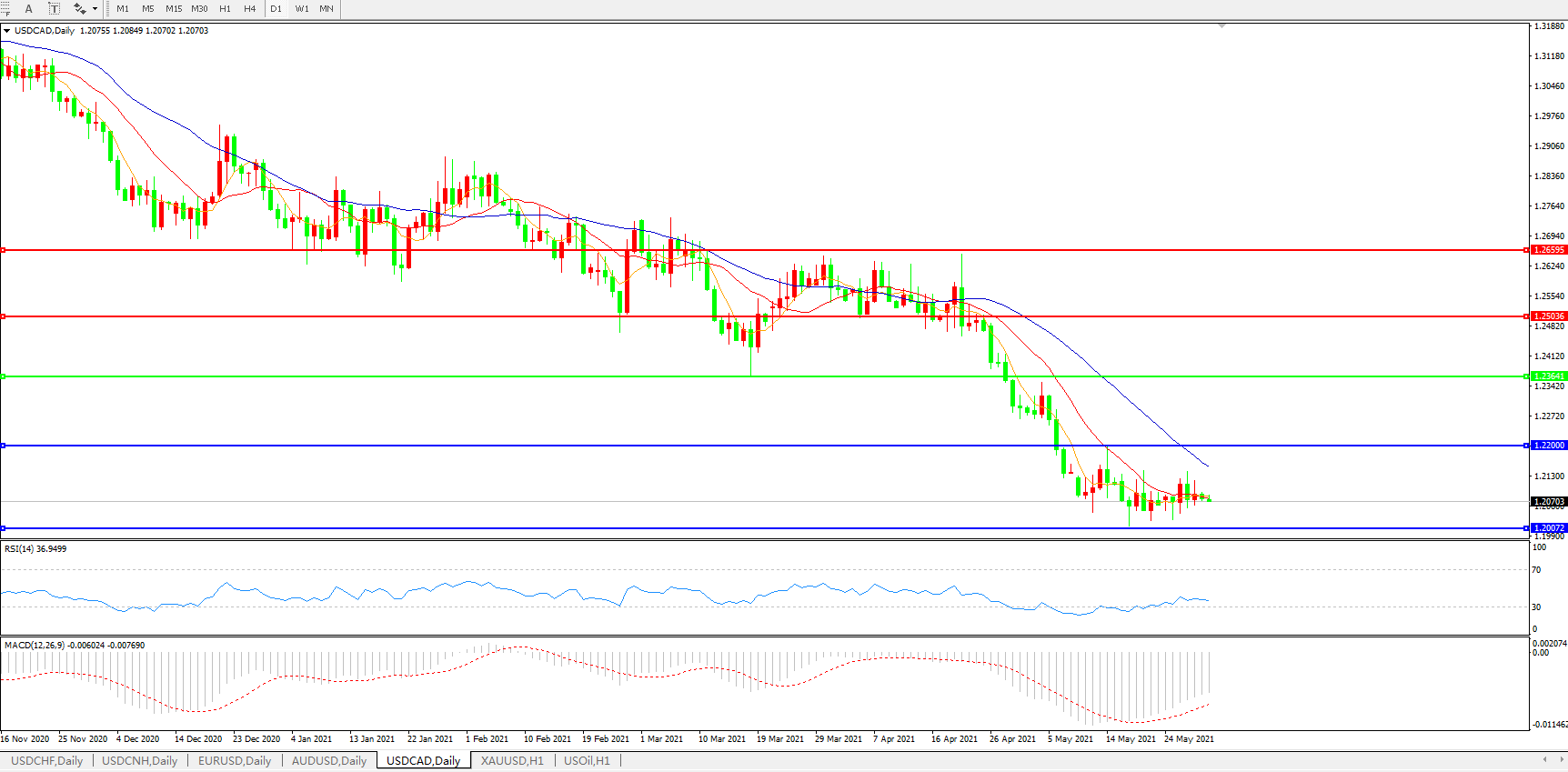 技术面简析:日线图均线呈有序空头排列,汇价持续下行,MACD运行于0轴下方但量能开始缩量,RSI有走升迹象,预计短期汇价大概率将低位整理。