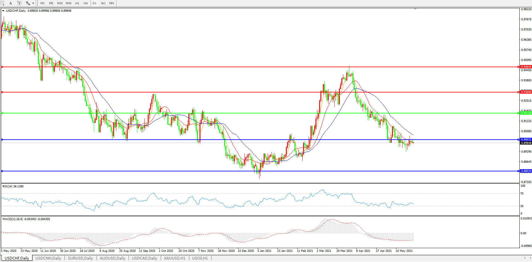 技术面简析:日线图均线发散下行,汇价大幅下行后弱势整理,MACD运行于0轴下但量能0轴开始缩量,RSI再度走弱,预计短期汇价大概率将在反弹修正后进一步下行。