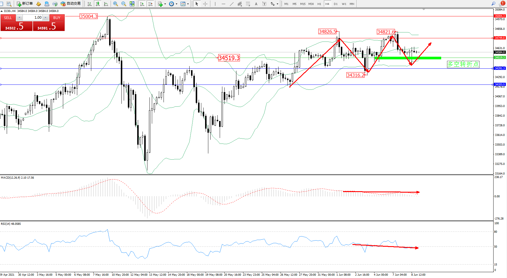 道琼斯指数6月8日(周二)收盘下跌30.88点,跌幅0.09%,报34599.36点;美股收盘,道指小幅收跌,美国股市收盘接近历史高位,美国国债上涨,因为投资者继续讨论通胀上升对货币政策的影响。最近几周以来,美国股市一直在历史高位附近相对狭窄的区间内波动,投资者试图平衡经济复苏、美联储对通胀担忧表现出鸽派态度、市场估值处于高位和全球新冠疫苗接种不平衡等因素的影响。在CPI报告即将发布,以及美联储下周三将宣布货币政策决定之际,市场波动性有所回升。本月迄今为止的窄幅交易区间反映了通胀数据公布前市场的谨慎情绪。在美联储强调通胀飙升是暂时性的同时,政策制定者也必须采取行动安抚市场。拖延甚至无动于衷可能会引发市场担心的经济混乱。