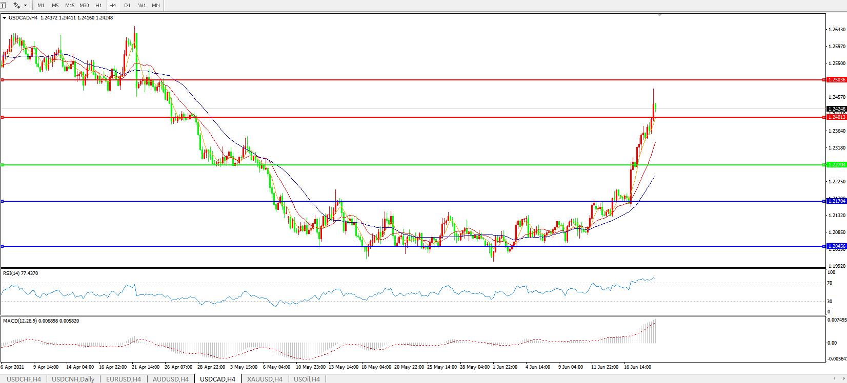 美元兑加元涨0.87%至1.2466; 根据加拿大皇家银行Alvin Tan称,如果美元收盘超过位于1.2362的一年下行通道上轨,将确立长期看涨趋势逆转,下一目标位将指向1.2406,然后是1.2502,支撑位在1.2296和1.2263附近。