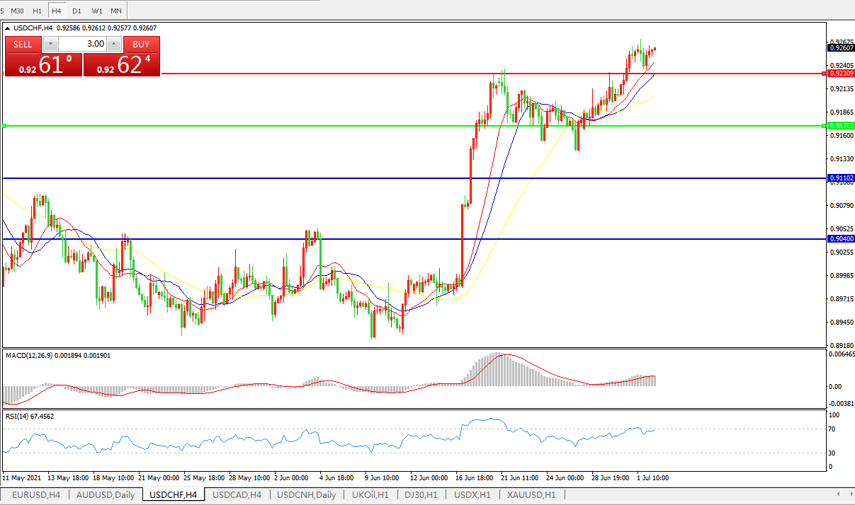 周四(7月1日)美元指数触及92.60,为4月初以来最高;美元尾盘上涨0.2%,报92.53;但在报告显示美国6月制造业活动增长放缓,而就业分项指数显示七个月来首次萎缩,可能是由于原材料和劳动力严重短缺后,美元小幅缩减涨幅。