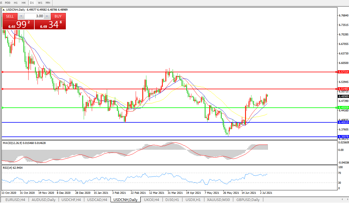 交易策略: 在6.4505之上,看涨,目标价位为6.5150,然后为6.5730。