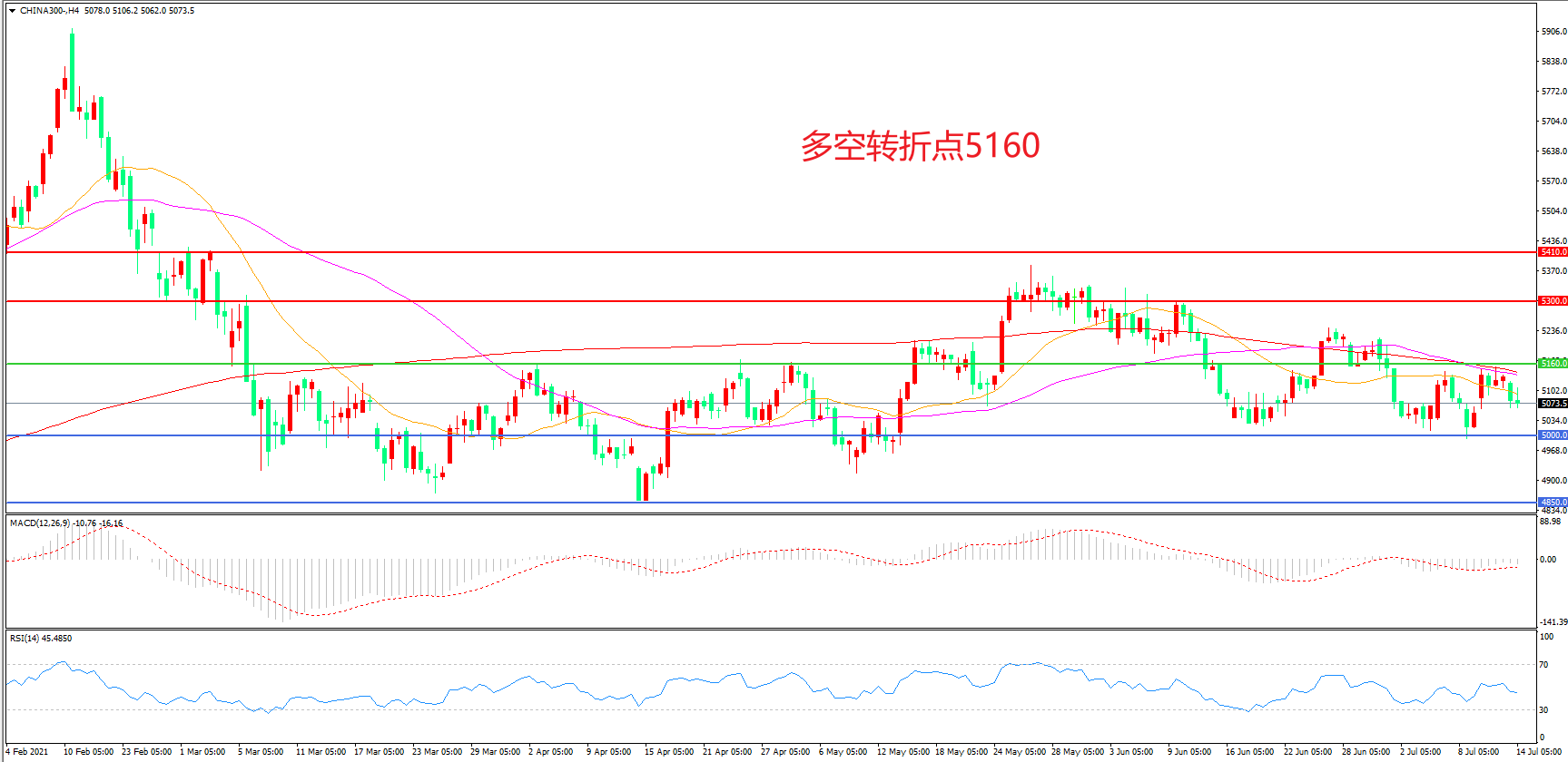 多空转折点:5160.00