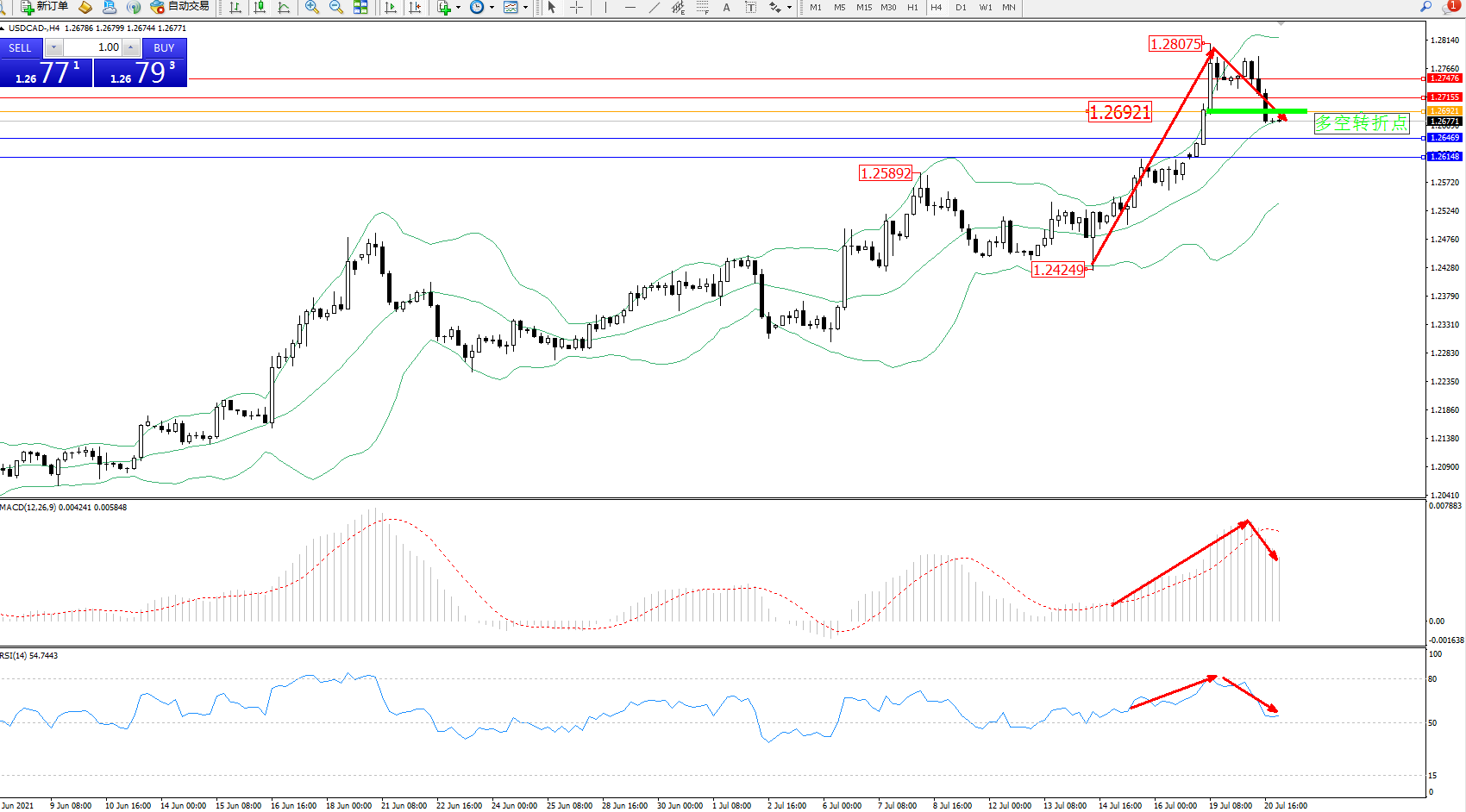 交易策略:1.26921下方看跌,目标1.26469、1.26148