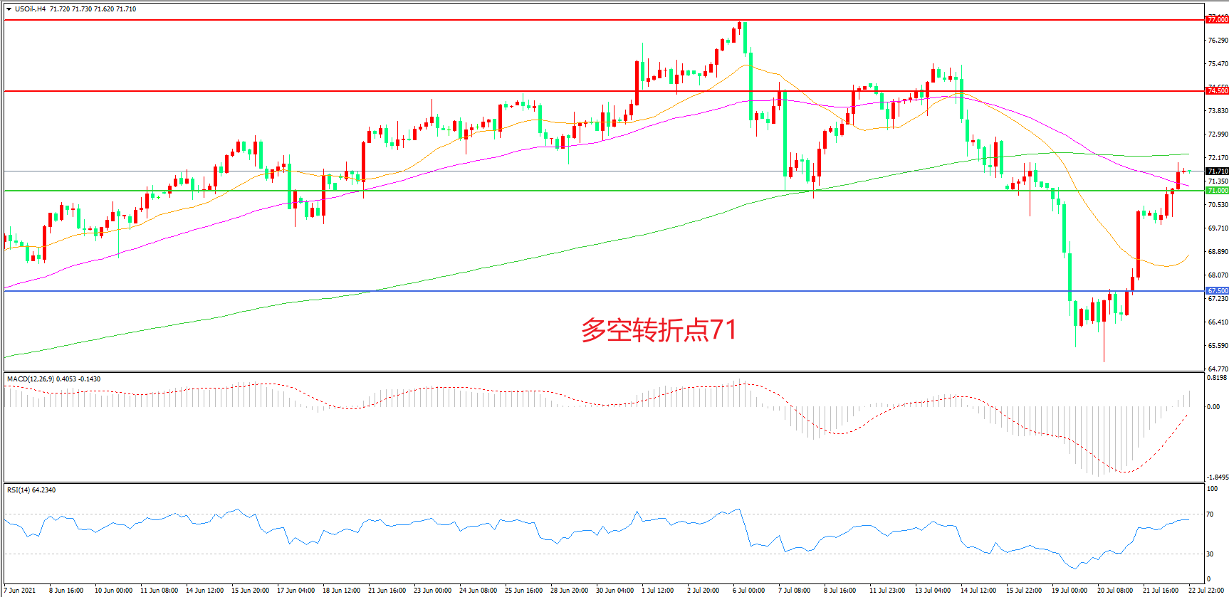 交易策略:在71.00之上看涨,目标74.50       77.00