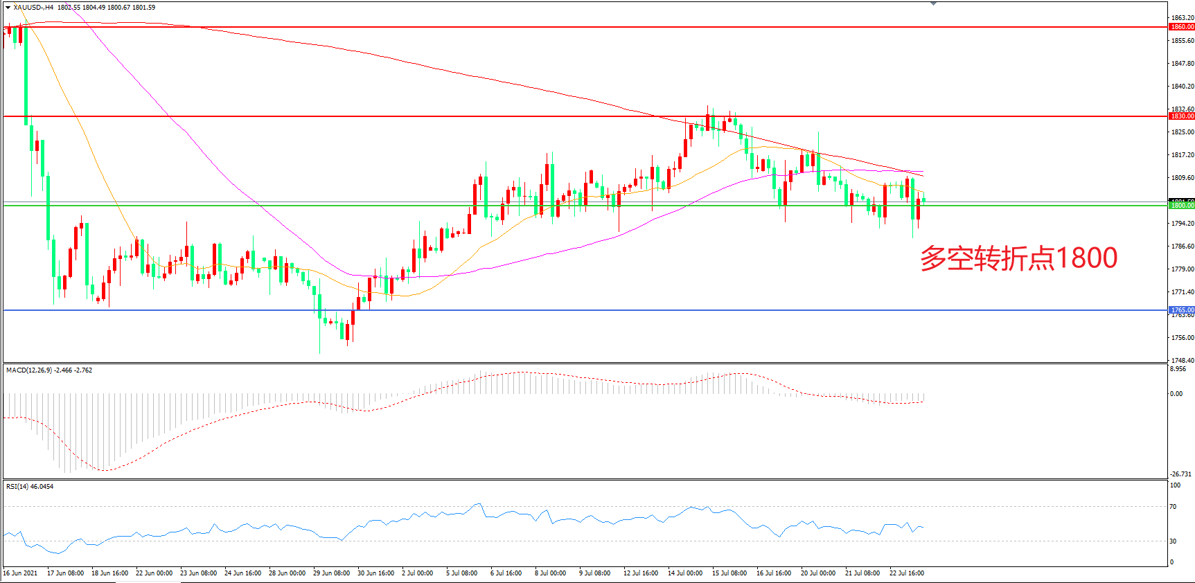 备选策略:在1800.00之下看跌,目标1760.00 1730.00