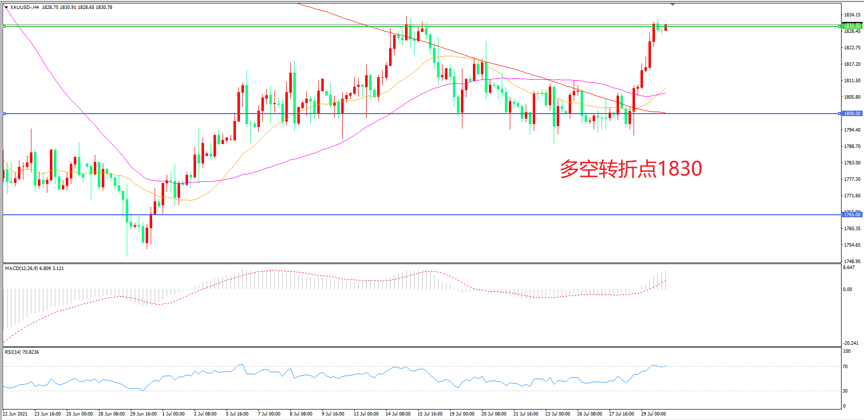 多空转折点:1830.00