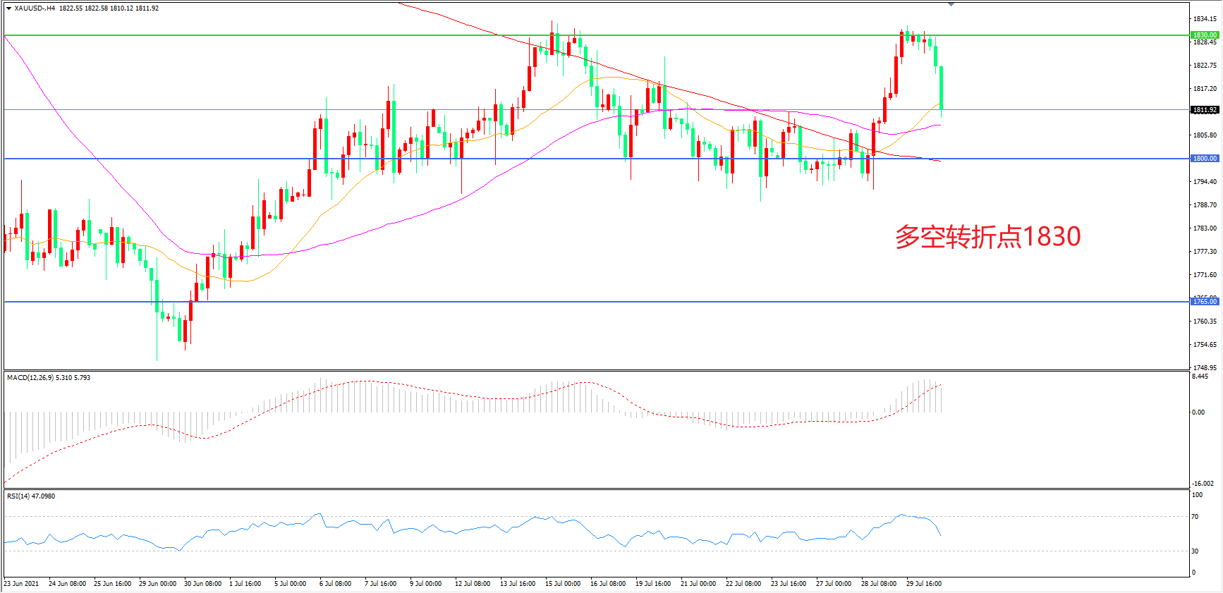 备选策略:在1800.00之下看跌,目标1765.00 1730.00