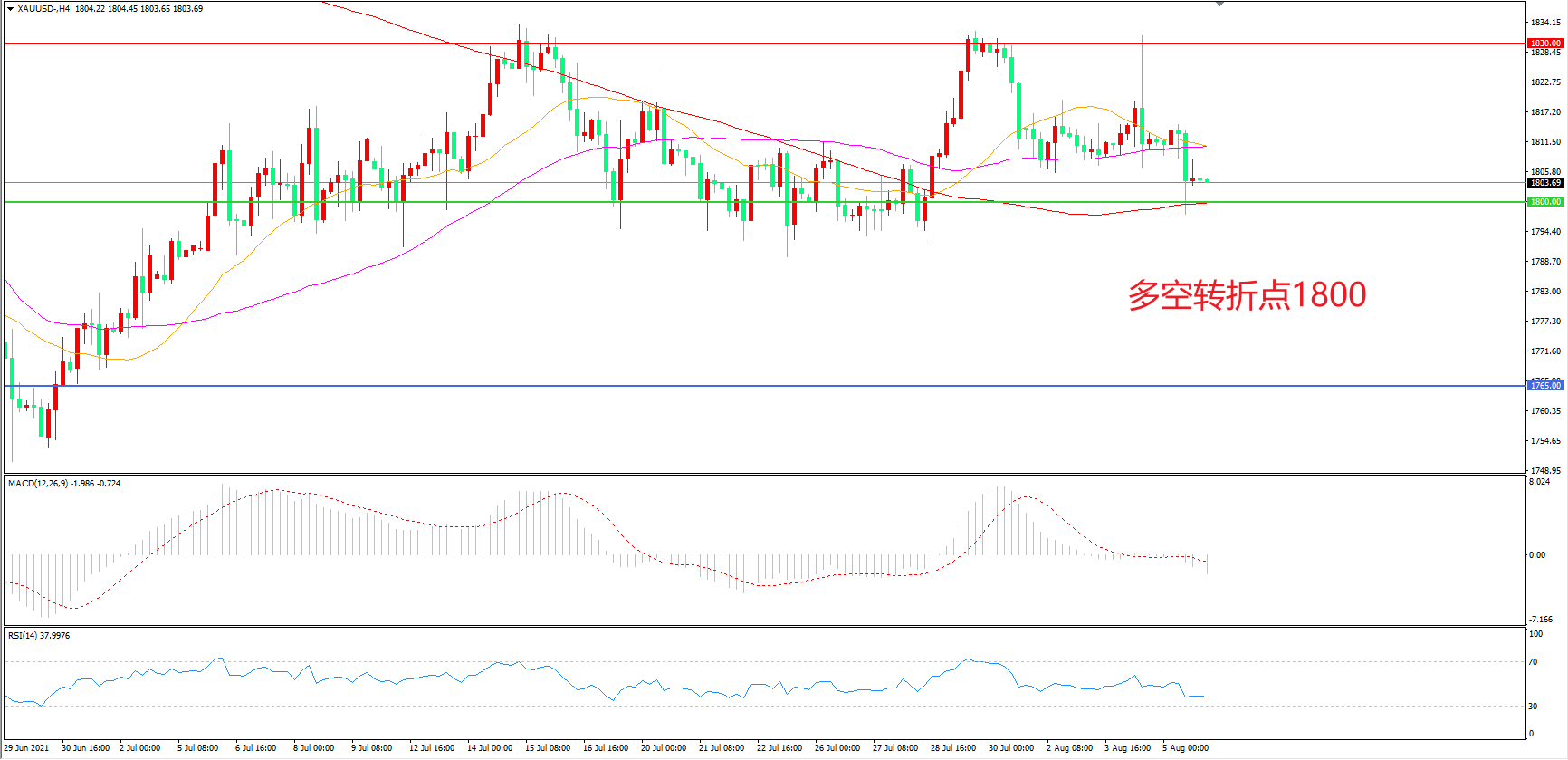周四(8月5日),因美国ADP就业数据逊于预期,金价一度上涨逾1%,但在美联储副主席拉里达暗示美联储可能在今年晚些时候开始缩减资产购买规模后,现货黄金迅速回落,收报1804.35美元/盎司。美联储多位成员表示将根据未来几个月的劳动力市场情况,在今年晚些时候或明年初缩减债券购买规模,这使得今晚的非农就业报告格外引人关注,如果非农数据表现强劲,可能会提高美联储缩减QE的预期。