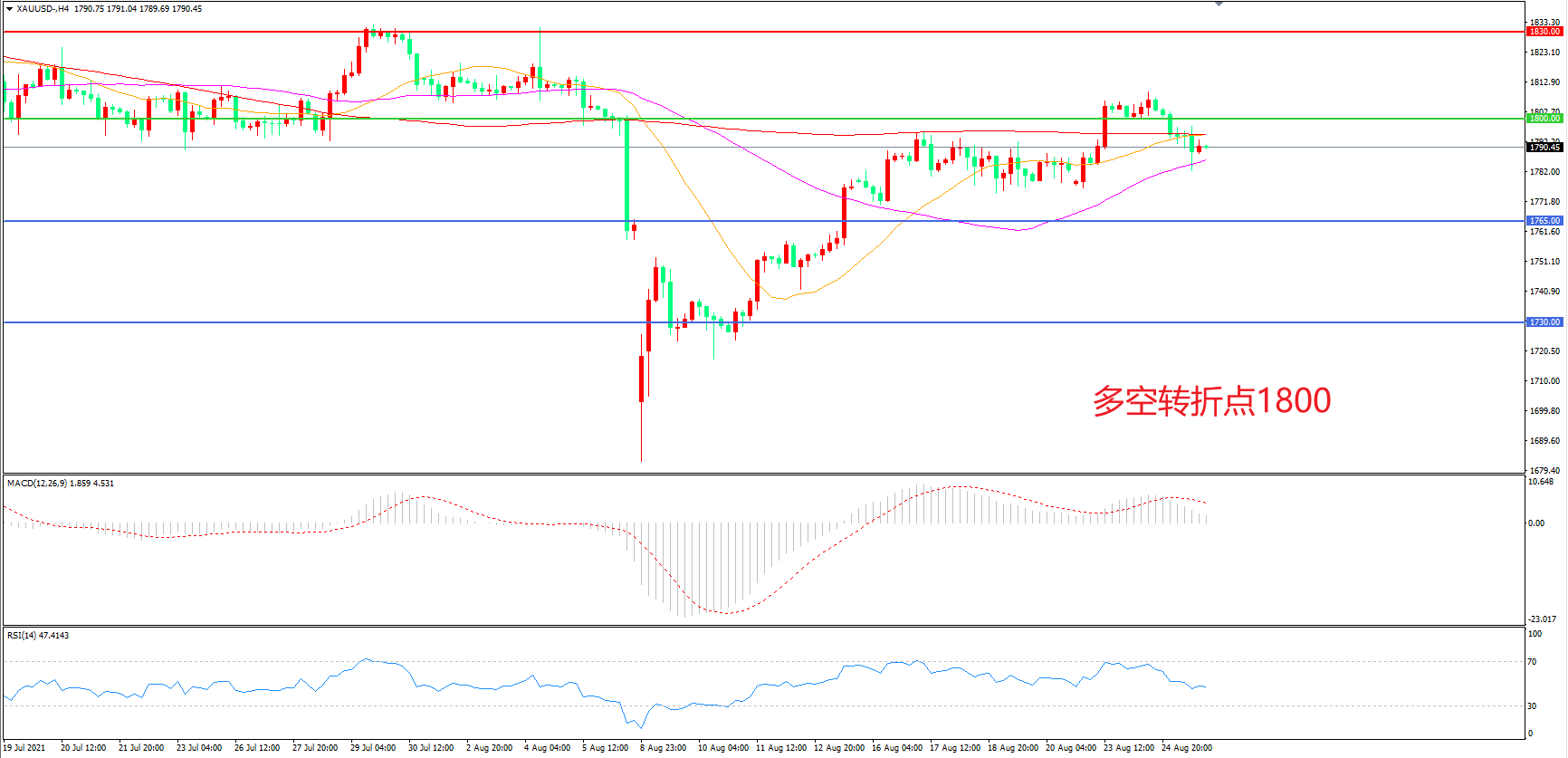 多空转折点:1800.00