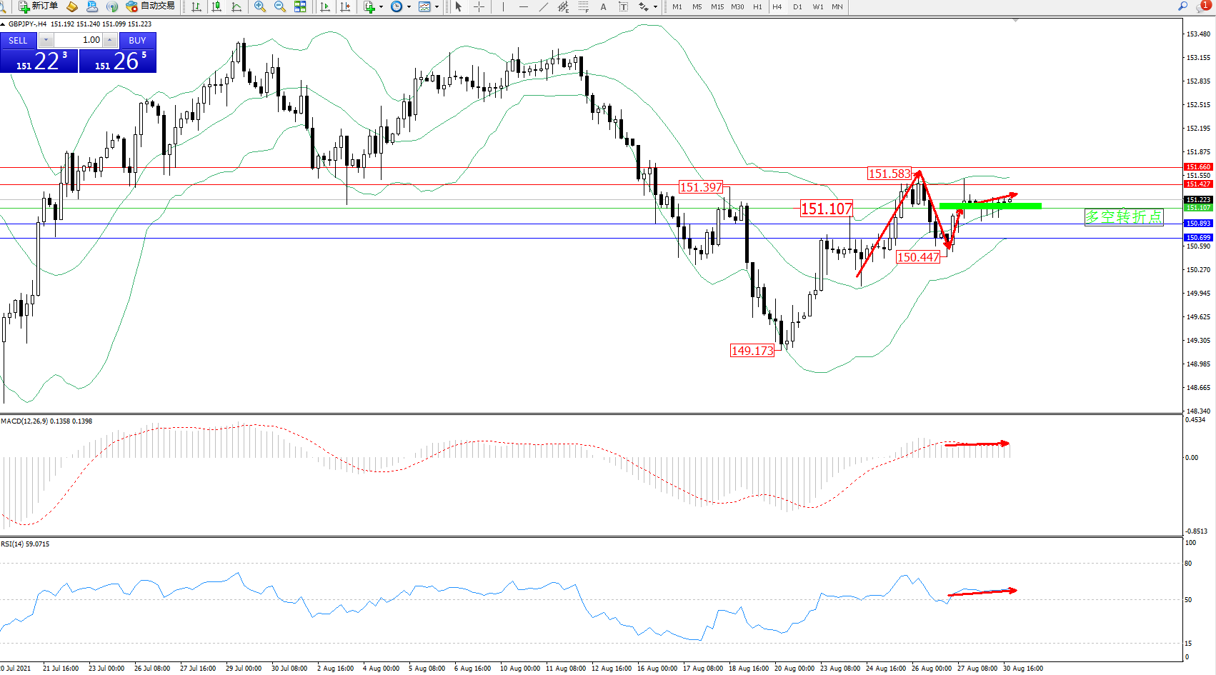 交易策略:151.107上方看涨,目标151.427、151.660