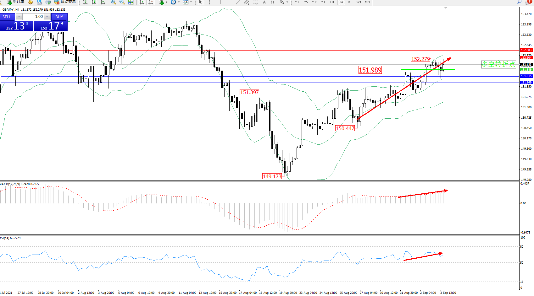 多空转折点:151.989