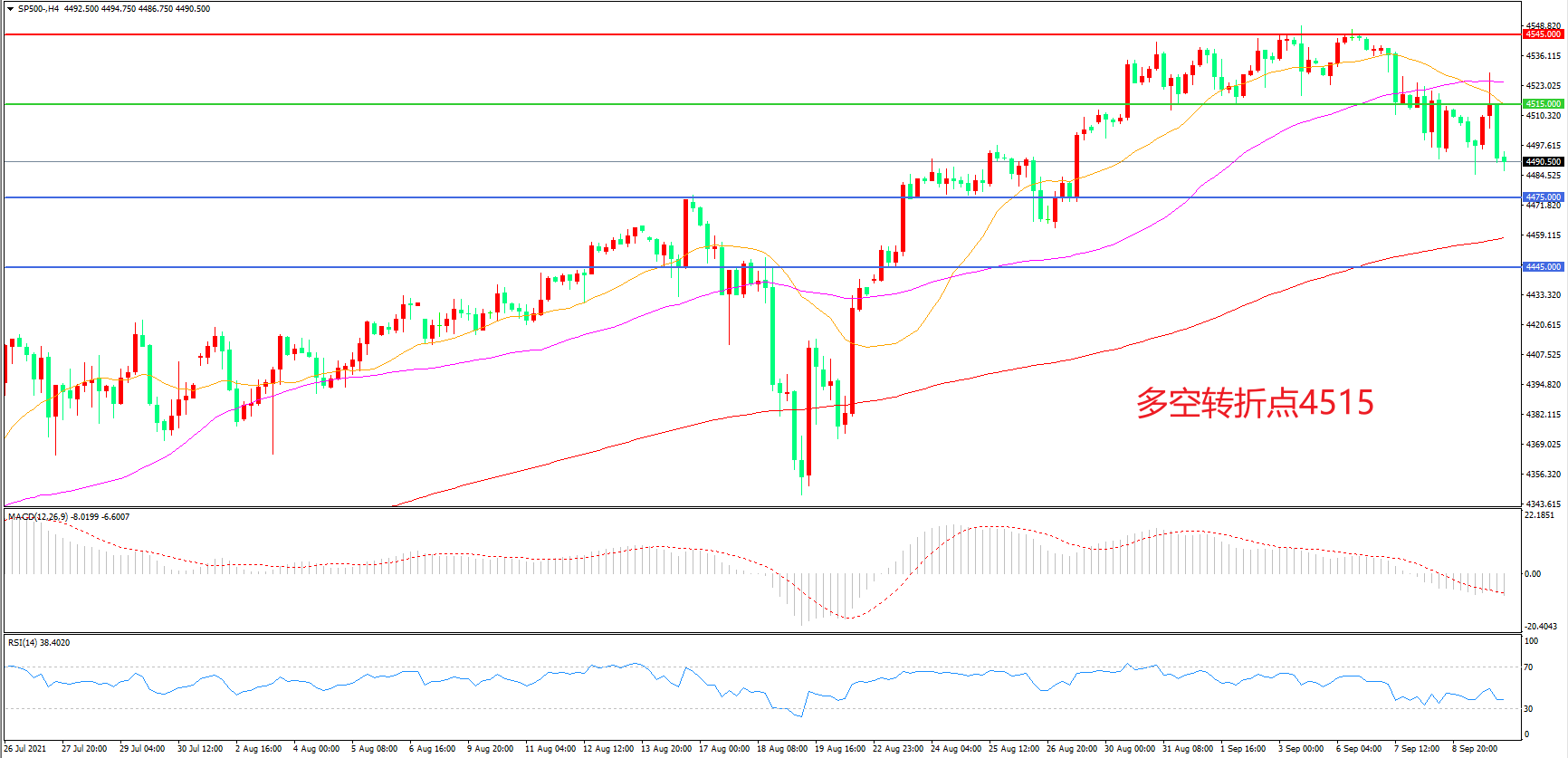 周四(9月9日)美国财政部长耶伦敦促众议院议长佩洛西和国会提高债务上限,并称美国债务违约的可能性可能给金融市场带来严重后果,悲观情绪导致标普500冲高回落,收报4490点。近期债务危机与Delta病毒传播影响让市场悲观情绪愈发浓厚,如果出现新的负面形势发展,美股可能还会回调。