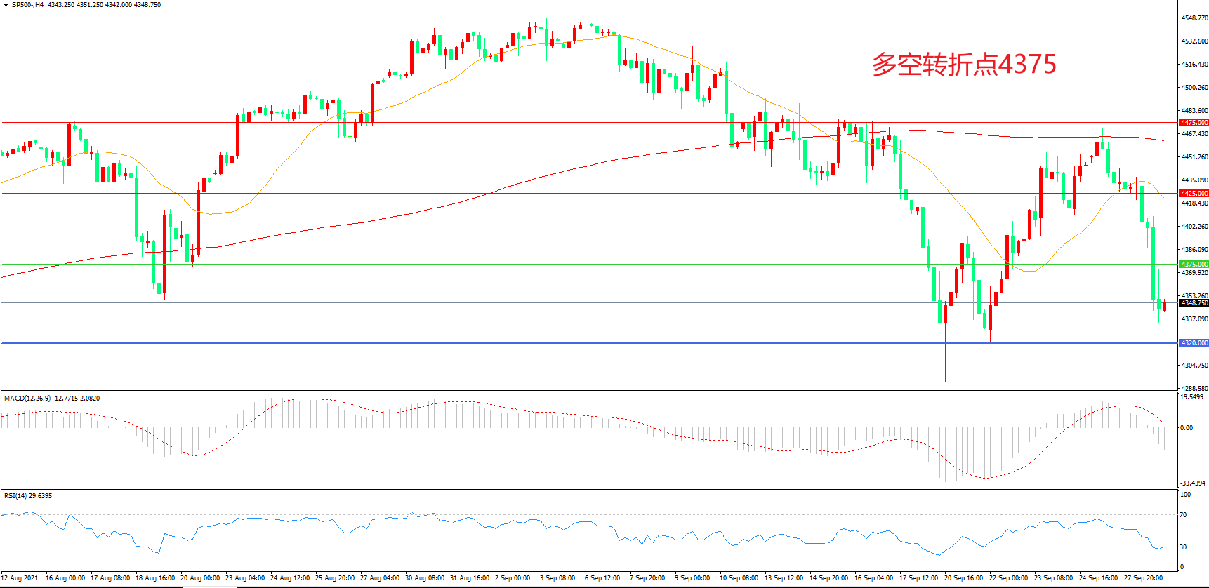 多空转折点:4375.00