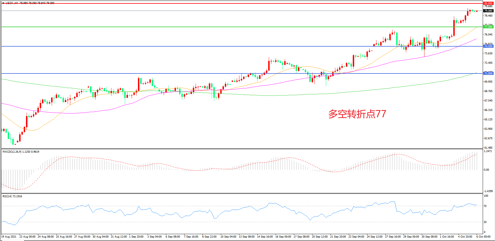 多空转折点:77.00
