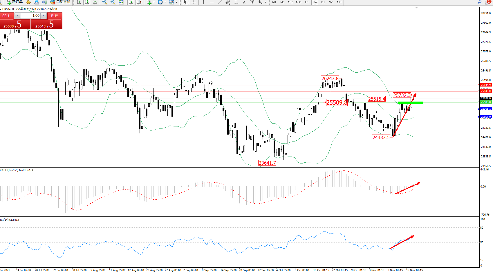 技术点评:多头动力低位强势拉升震荡上扬,延续布林带指标上轨附近持续向上移动中,短期未见止步迹象,布林带指标呈收口走势后开始缓慢张口,MACD指标低位多头动力维持整理上移至0轴线上方徘徊,RSI指标处于多头区域持续震荡上移中;