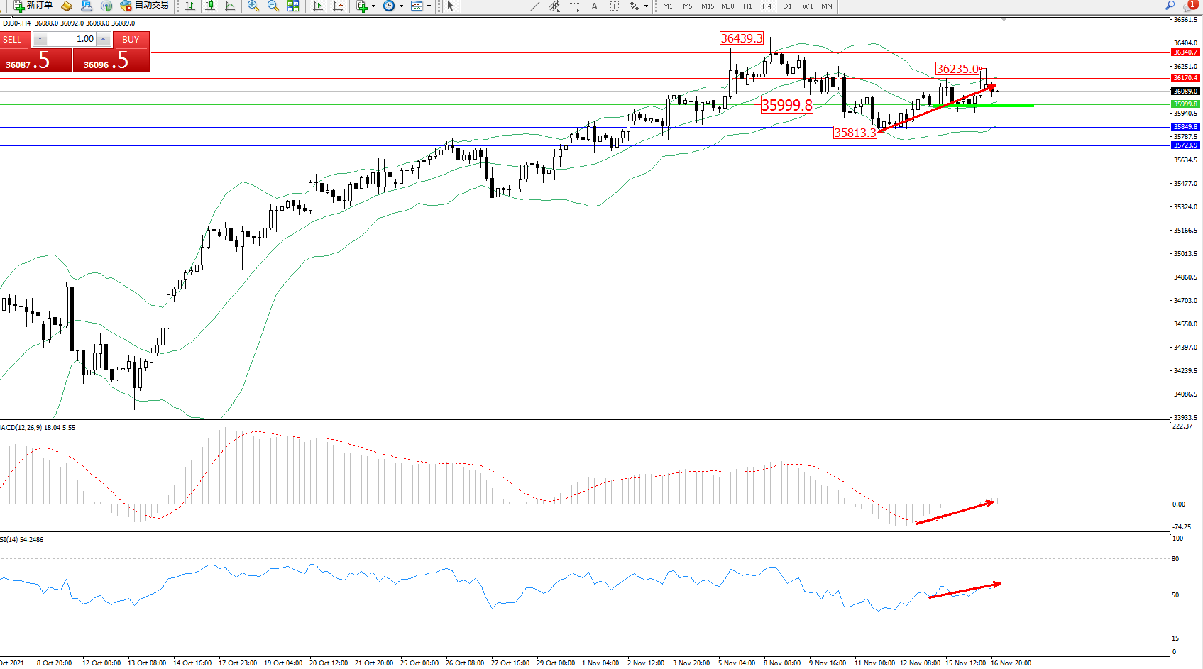 道琼斯指数11月16日(周二)收盘上涨56.42点,涨幅0.16%,报36143.87点;美股收盘,三大股指集体收涨,道指弱势整理,美联储戴利:与其先发制人地提高利率,不如等待更清晰的结果,保持耐心是最大胆、最好的行动,如果通胀开始变得更为持续,美联储将采取行动,加息时间“不是现在”,但并不意味着“永远不会加息”,现在提高利率并不能解决高通胀问题,反而会抑制需求,减缓复苏,现在几乎没有证据表明工资价格在螺旋上涨,有合理的理由认为高通胀的持续时间不会超过疫情。当我们得到更明确的信号时,将准备行动,在未来几个季度,将观察如果通胀减缓以及劳动力市场的恢复情况。