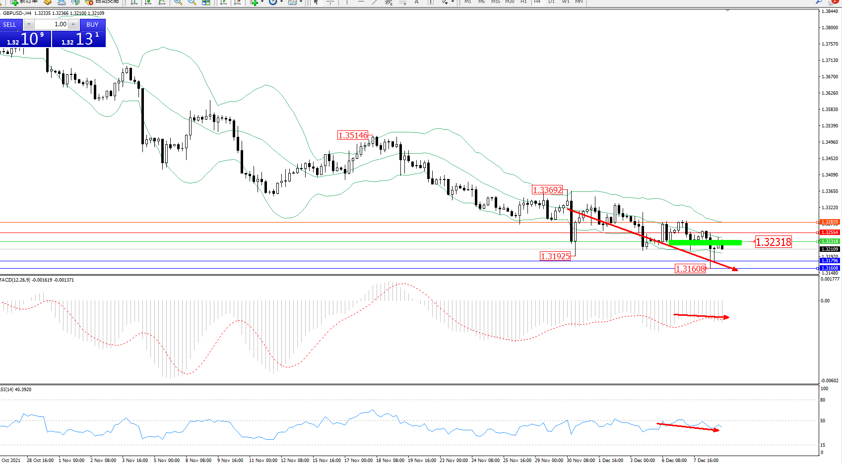 交易策略:1.32318下方看跌,目标1.31796、1.31608
