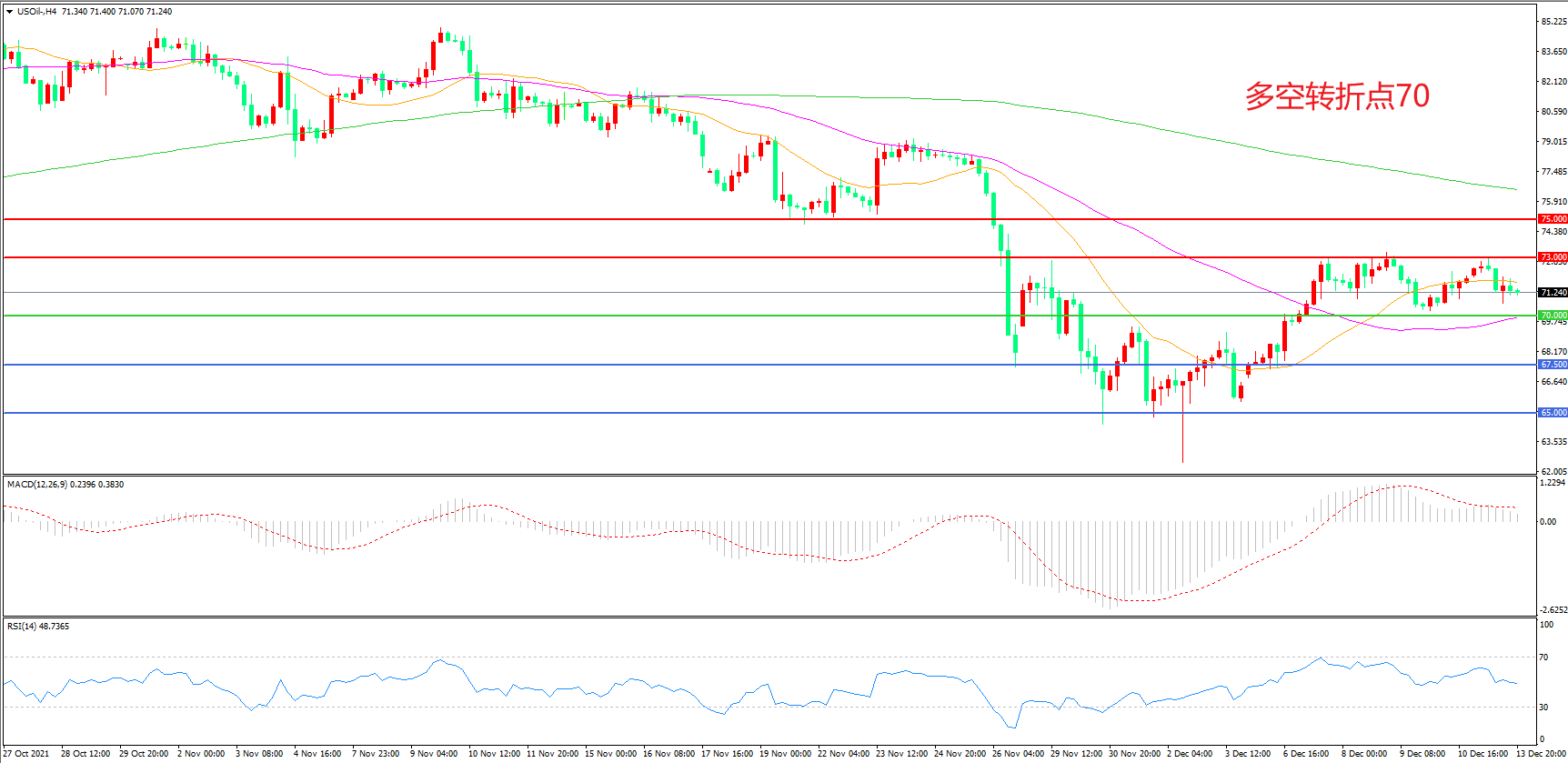 多空转折点:70.00