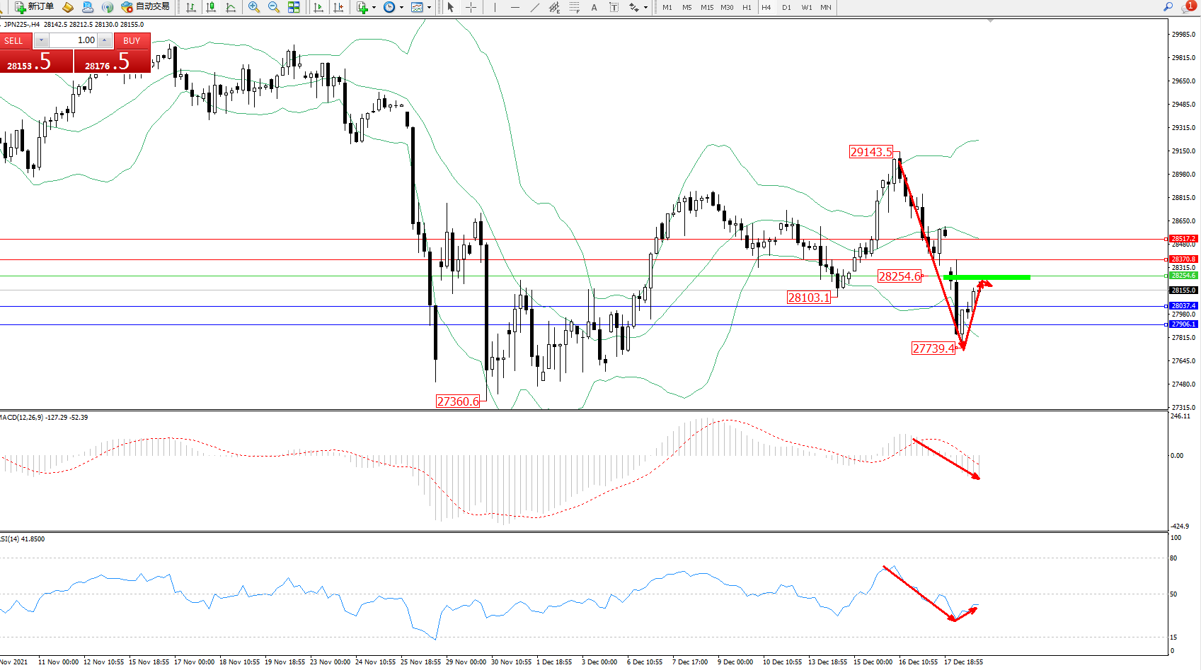 技术点评:空头动力急速震荡下挫,低位抵达27739位置后得到支撑回升,布林带指标呈张口走势态势良好,低位多头动力有缓慢上移迹象,短期回升走势或有持续,MACD指标维持空头区域持续整理平移,RSI指标处于50均衡线下侧持续震荡中;