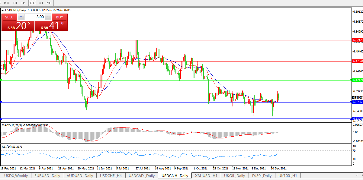 备选策略:在6.4240之上,看涨,目标价位为6.4700,然后为6.5210。