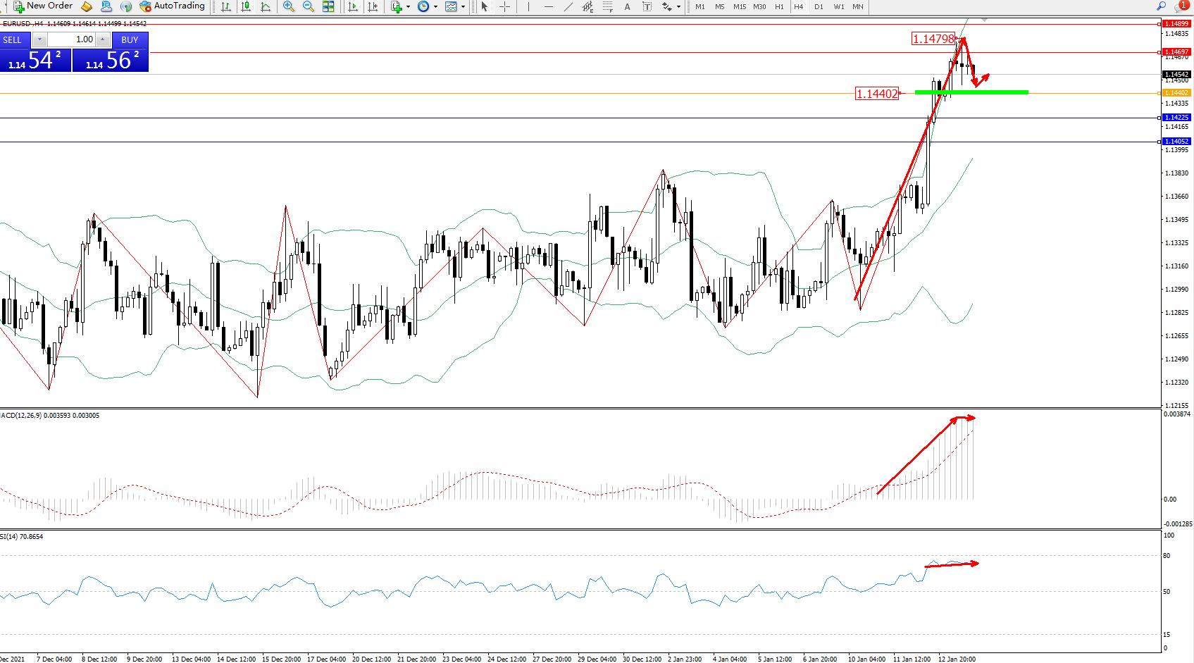 交易策略:1.14402上方看涨,目标1.14697、1.14899