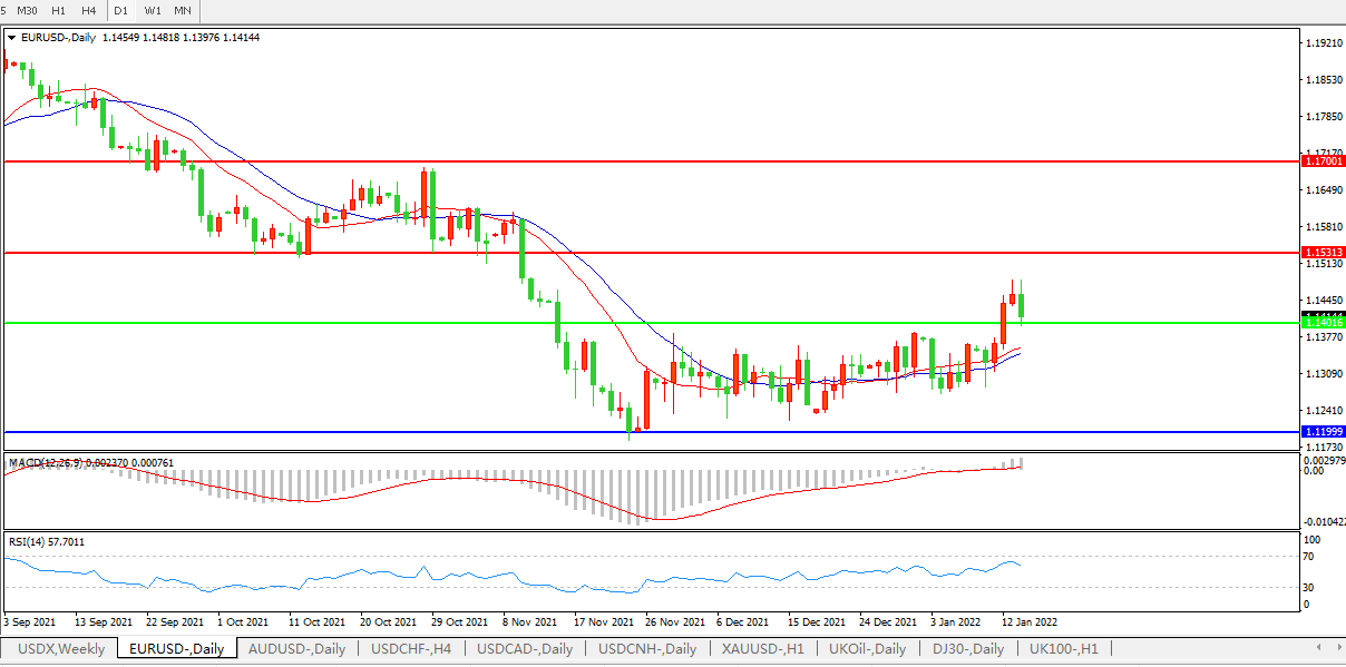 交易策略:1.1400上方看涨,目标1.1530、1.1700