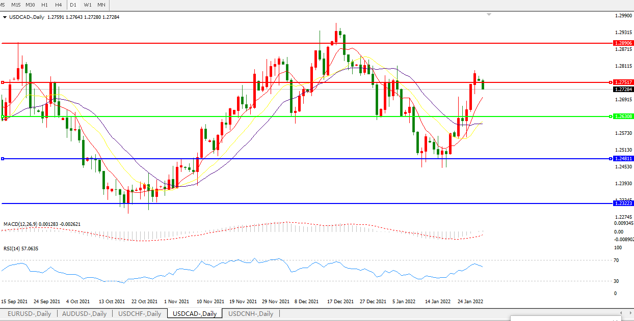 美元兑加元连续第三天上涨,报1.2771,尽管WTI油价升至七年新高;加元兑美元本周下跌1.51%。