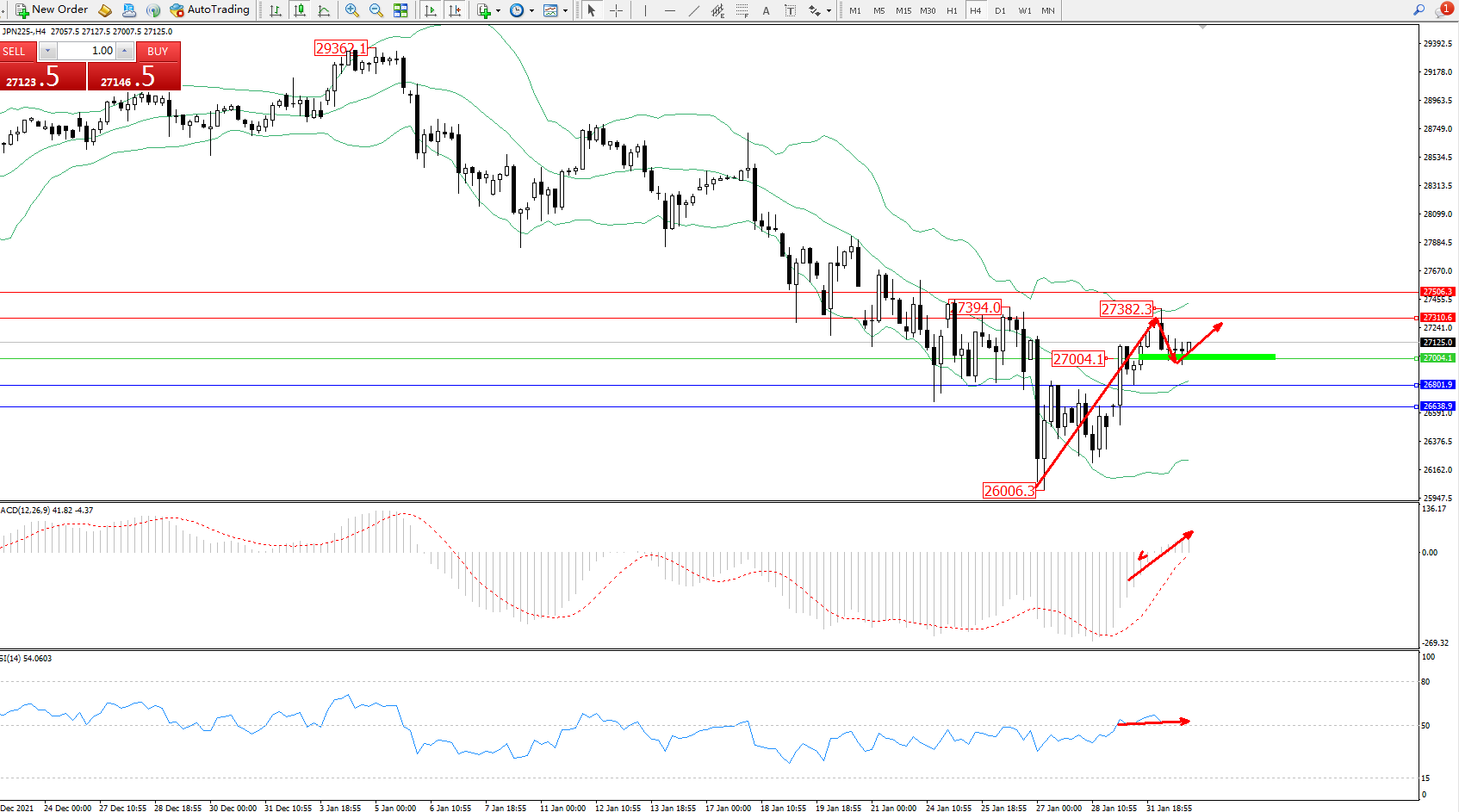 日经225指数2月1日(周二)收盘上涨75.02点,涨幅0.28%,报27077.00点。尽管只有少数人认为这是尾部风险,但最近越来越多的证据支持日本具有通胀恐慌的风险。日本国债收益率可能继续小幅走高,大型银行的10年期固定抵押贷款利率达到了六年来的最高水平,而东京的公寓价格创下了历史新高,由于成本上升,主流公司将鱼罐头的价格提高了15%。下一个重要的看点可能是4月份的CPI数据。CPI可能会突然超过日本央行的目标,即使只是短暂的。此外,日本国债市场周一也受到了全球债券抛售的影响,10年期国债收益率攀升至2016年负利率制度开始以来的最高水平。