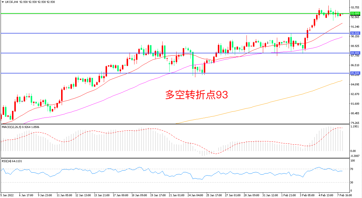 交易策略:在93.00之上看涨,目标96.00 100.00