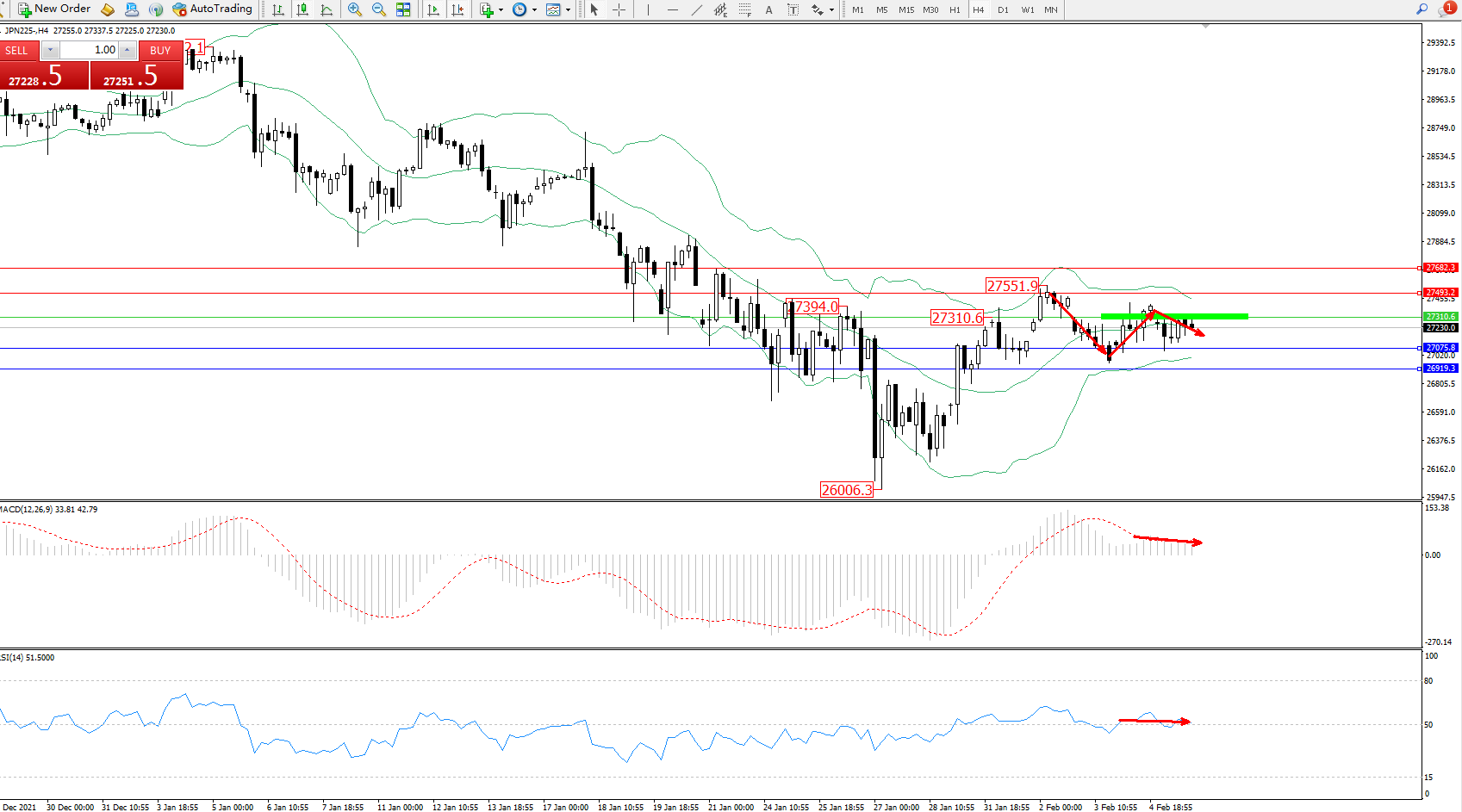 日经225指数2月7日(周一)收盘下跌204.49点,跌幅0.75%,报27235.50点。日本第二针新冠疫苗接种率为78.9%,三针疫苗接种率为5.9%。日本首相岸田文雄:日本可以在2月下旬达到每日接种100万剂新冠疫苗的能力。