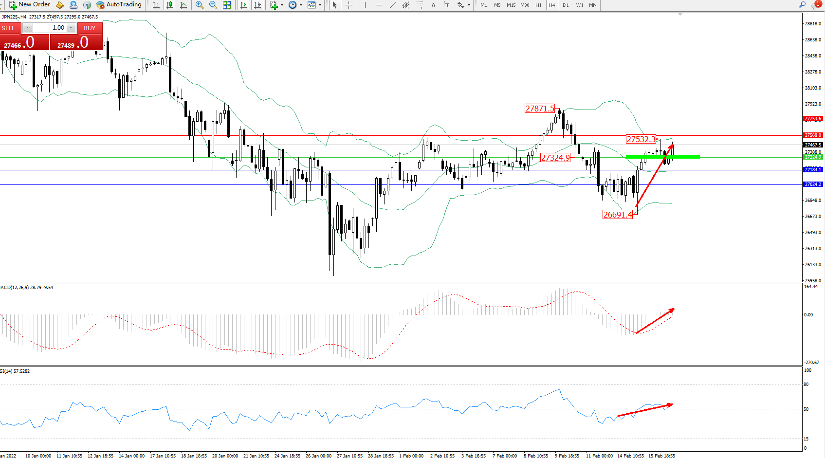 日经指数JPN225——4小时K线图显示:
