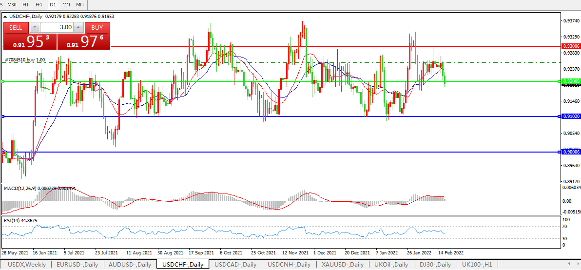 交易策略:0.9200下方看跌,目标0.9100、0.9000