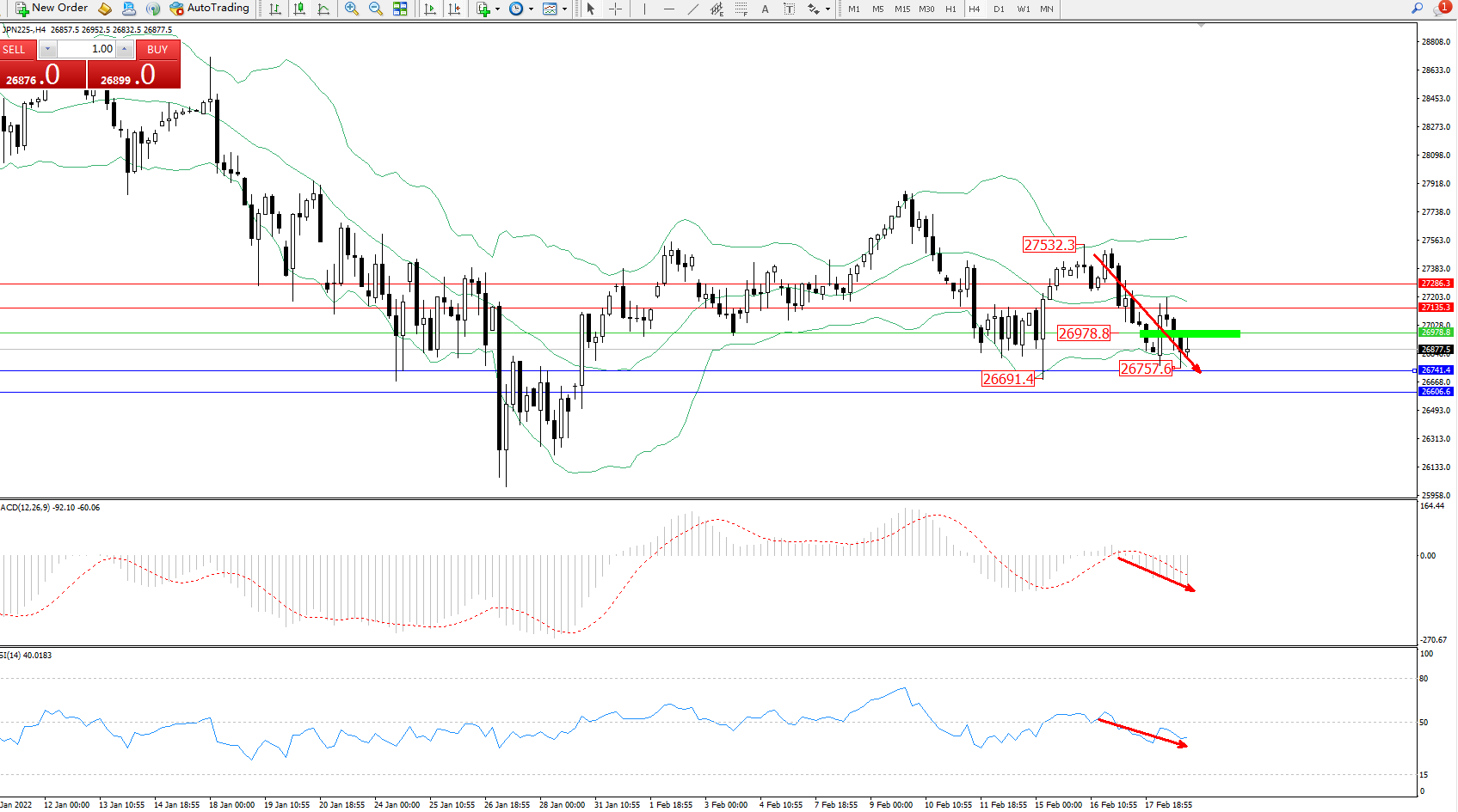 日经225指数2月18日(周五)收盘下跌111.37点,跌幅0.41%,报27121.50点。日本1月核心消费者物价连续第五个月上涨,但涨速较前月放缓,增强了日本央行升息步伐将落后其他经济体的可能性。由于能源价格飙升,消费者通胀预计将在未来几个月上升,而去年的移动电话费削减因素也将不再拖累价格。政府数据显示,1月核心消费者物价指数(CPI)较上年同期上升0.2%。核心CPI不包括波动较大的新鲜食品价格,但包括燃料成本。这低于调查预估的上涨0.3%,亦低于先前两个月的上涨0.5%。