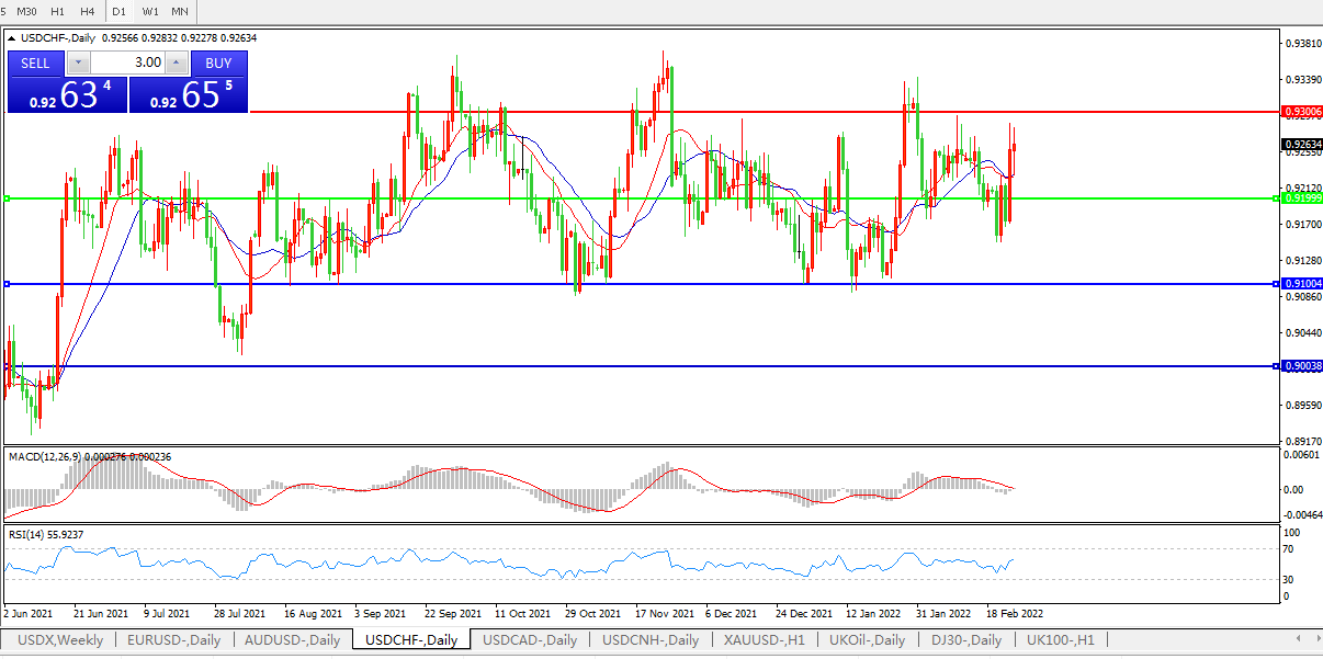 交易策略:0.9200上方看涨,目标0.9300、0.9400