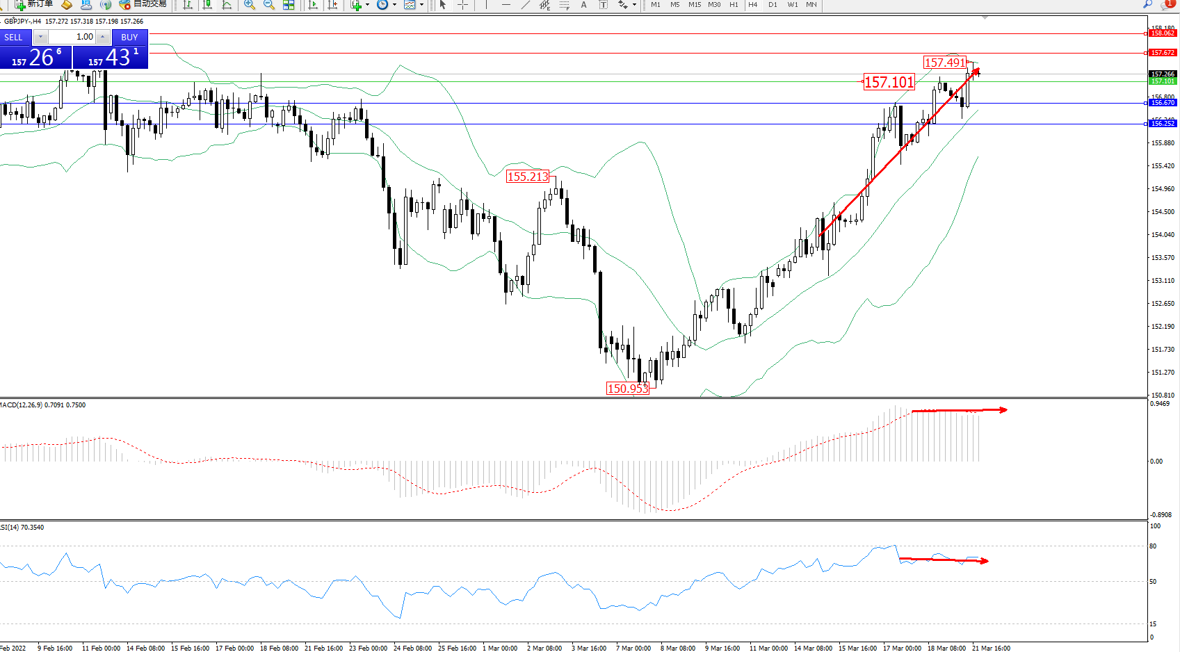 技术点评:多头动力延续布林带指标通道中上轨区间持续震荡上扬,高位抵达157.491位置节点后开始整理,短期多头动力动力有继续上移迹象,布林带指标呈上行趋势走势后开始高位有短暂收口迹象,但市场整体上行潜力持续,MACD指标处于多头区域高位维持整理平移,RSI指标处于多头区域维持整理徘徊中;