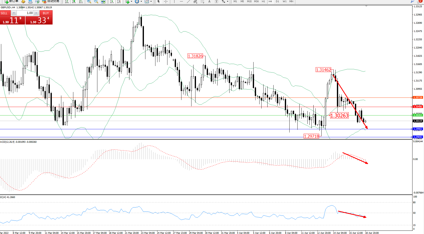 交易策略:1.30263下方看跌,目标1.29902、1.29692