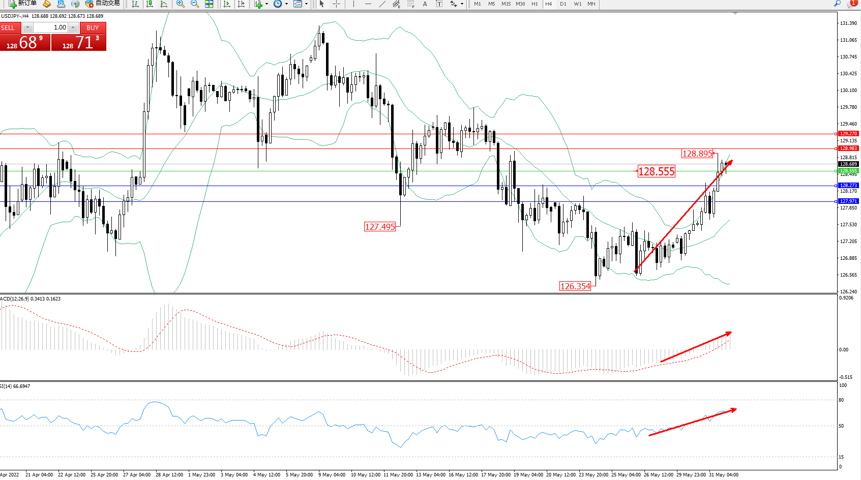 美元兑日圆维持128.689附近震荡,日本国会5月31日通过2022年度补充预算案,总额为2.7万亿日元,其中一部分将用于应对物价高涨。