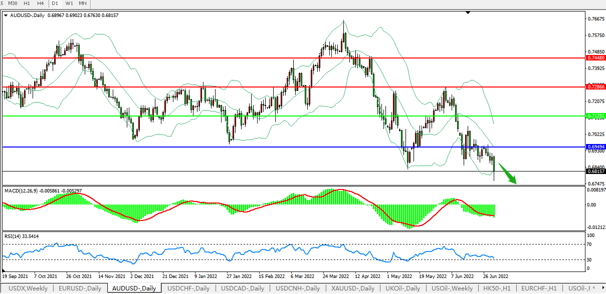 全球经济即将放缓的担忧日益加剧,商品货币下跌。澳元兑美元大跌逾2.2%,创2020年6月中旬以来新低至0.6783;纽元兑美元大跌2.3%,创2020年5月下旬以来新低至0.6161。
