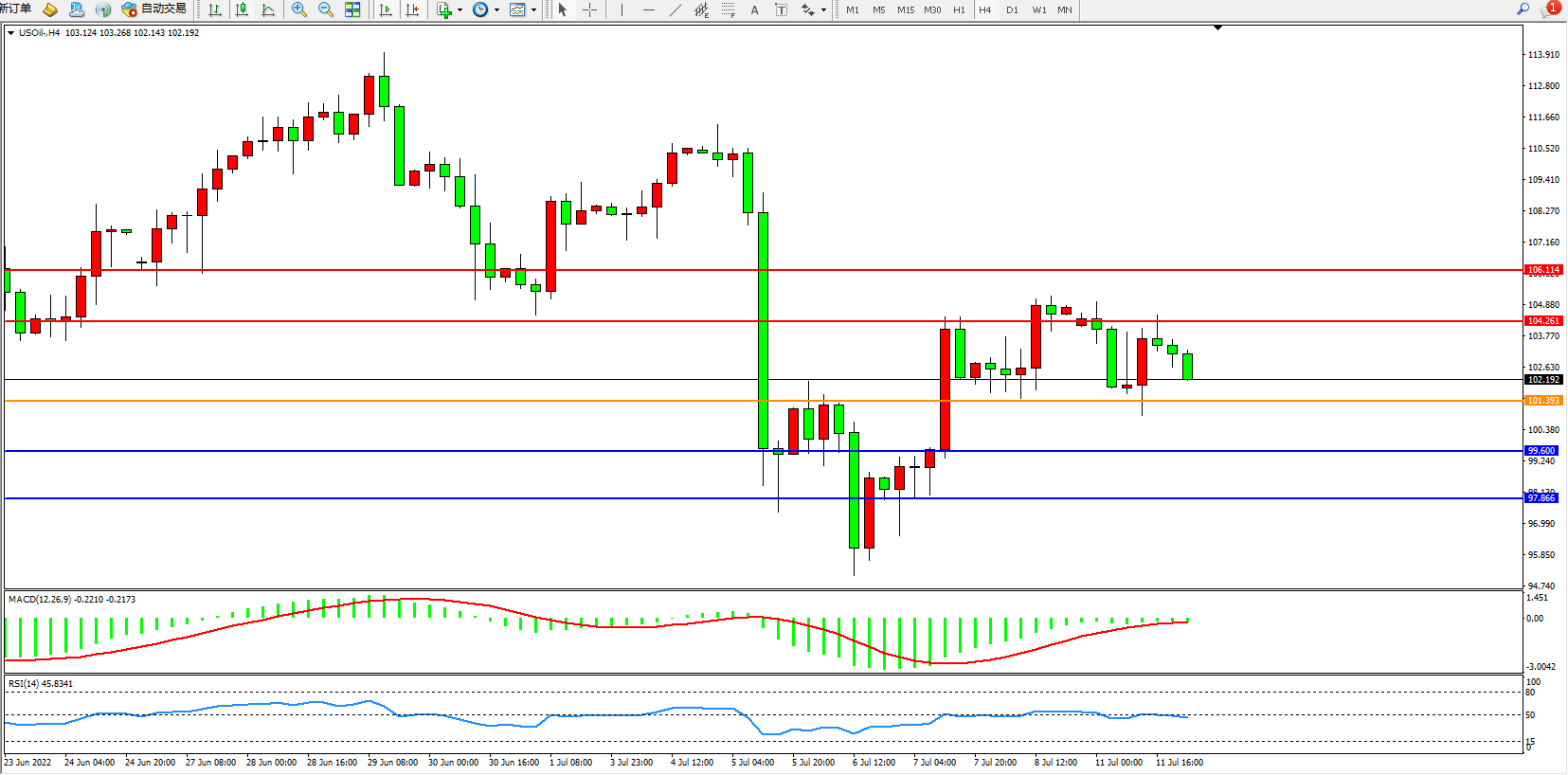 原油USOil——4小时K线图显示: