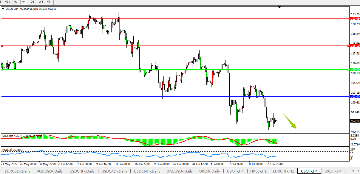 美国原油USOil 4小时图