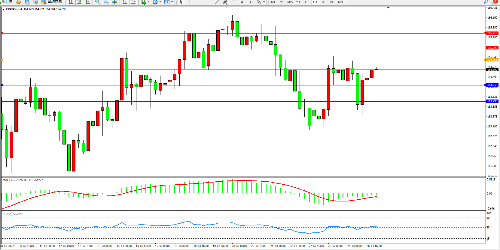 交易策略:164.961下方看跌,目标164.255、163.799