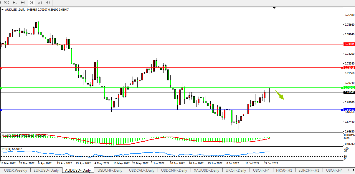 AUDUSD :持续试探0.7030压制 AUDUSD  NZDUSD