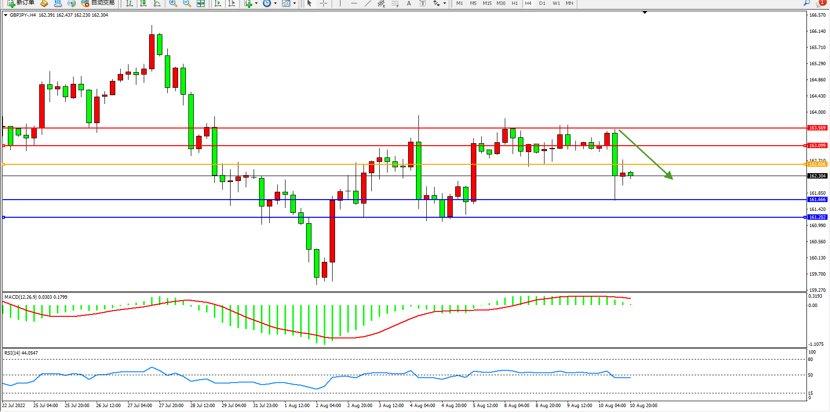 4小时图:短期维持窄幅整理平移,市场空头动力入场下行,MACD指标处于0轴线上側徘徊,RSI指标处于50均衡线下侧窄幅整理;
